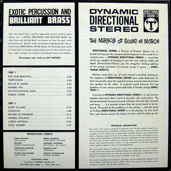 The tracklist features a mix of well-known standards and original compositions, each infused with a distinct rhythmic drive. Songs like “Quiet Village” and “Caravan” highlight the interplay between percussion and brass, with intricate arrangements that build tension and excitement. The use of bongos, congas, and other Latin percussion instruments adds a layer of complexity to the compositions, making them feel fresh and engaging. Evans’s approach to orchestration ensures that the brass section remains powerful yet balanced, allowing the rhythmic elements to shine without overpowering the melodies.