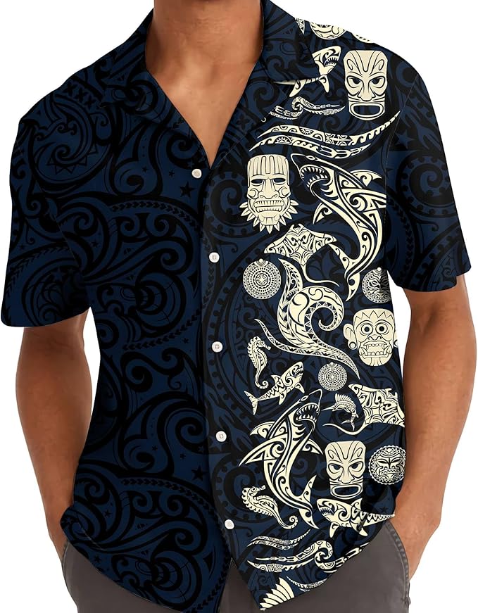 Hawaiian Tiki Shirt for Men Casual Button-Down