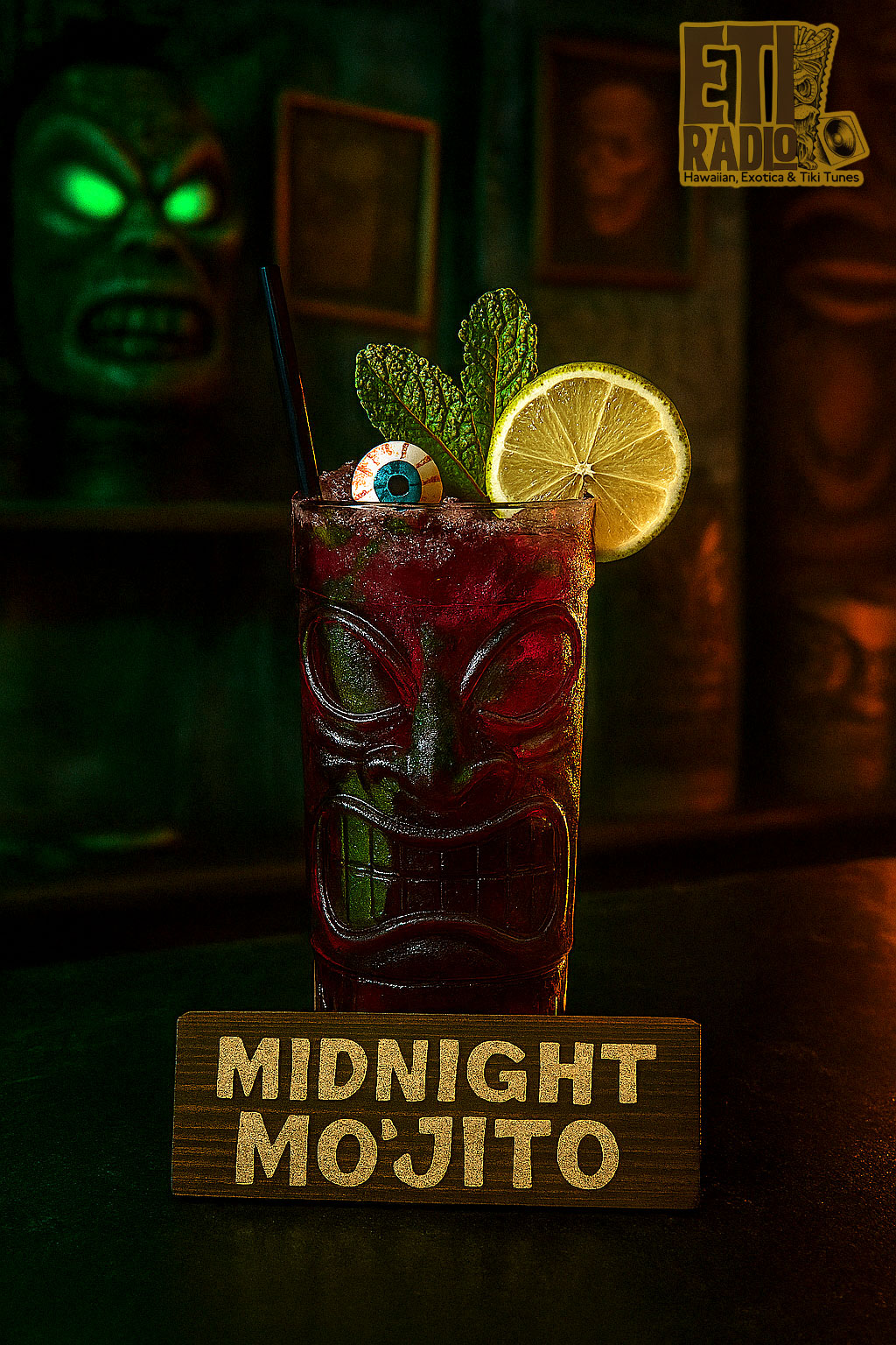 - A mint sprig, lime wheel, and a candy eyeball