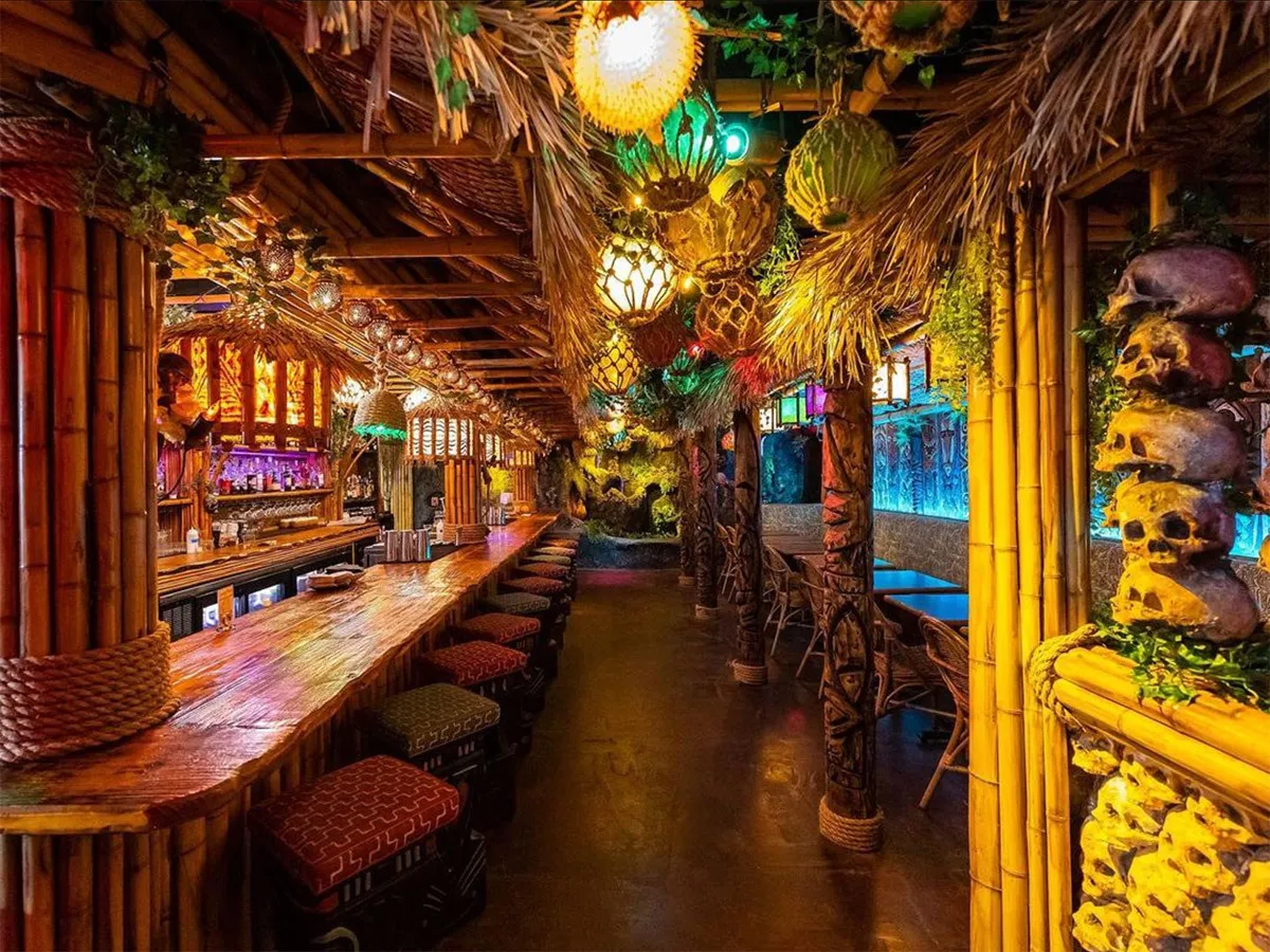 The bar is renowned for its immersive décor and atmosphere, designed by Bamboo Ben, a well-known tiki builder. Inside, guests encounter bamboo trim, neon-lit fountains, glass floats, skull chandeliers, and hand-carved tiki panels that create a dramatic, otherworldly vibe. The outdoor patio continues the tropical theme, making it a lively spot for gatherings. Hugman’s Oasis is not just about aesthetics—it’s also about the drinks. The menu features scratch-made cocktails with fresh juices prepared daily, ranging from classic tiki staples like Mai Tais to inventive flaming rum concoctions.